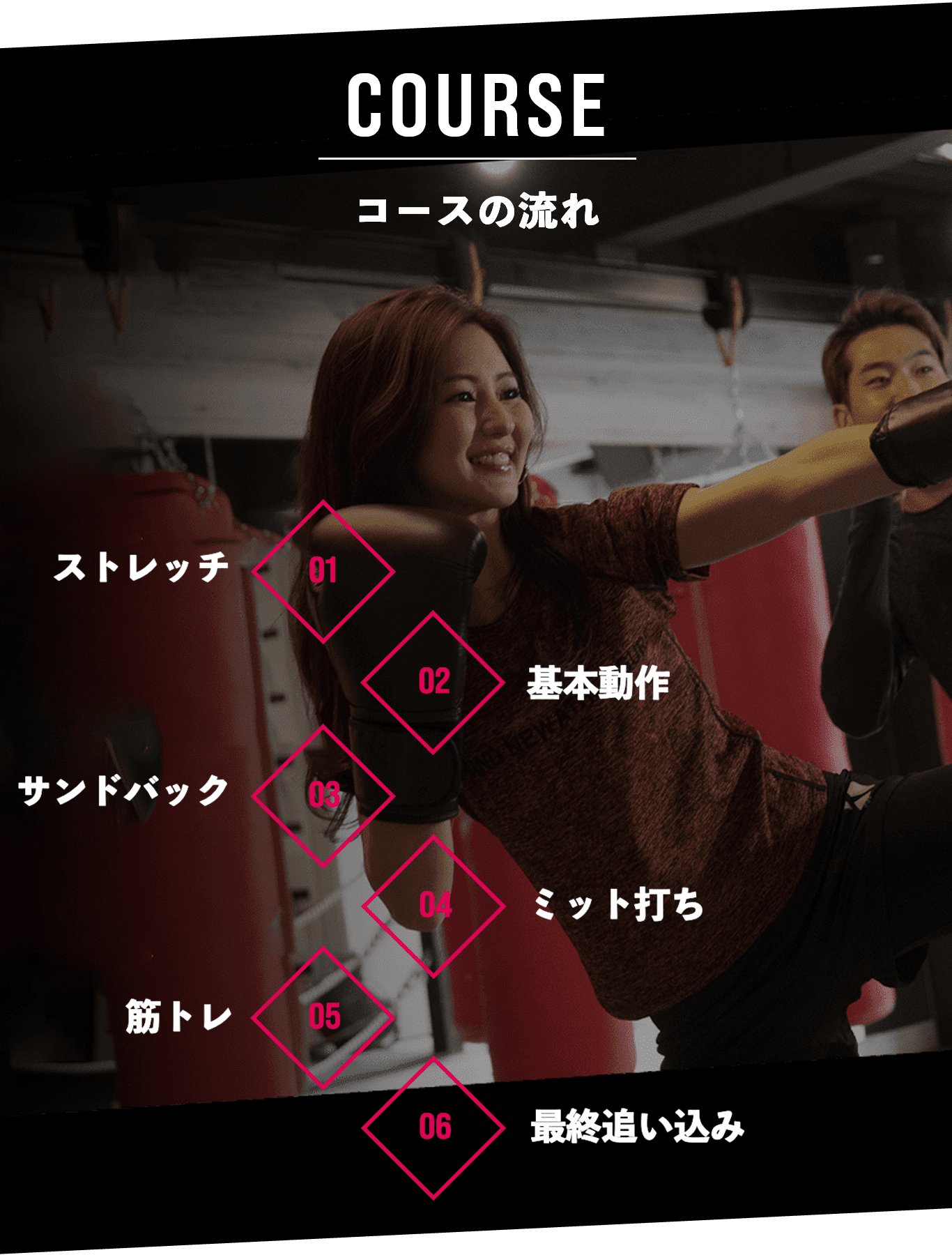 キツイ!ツライ!は一切なく、遊び感覚で楽しくダイエット&ボディメイクして頂けます。初心者の方でもトレーナーが丁寧にレクチャーしますので安心して通っていただけます。